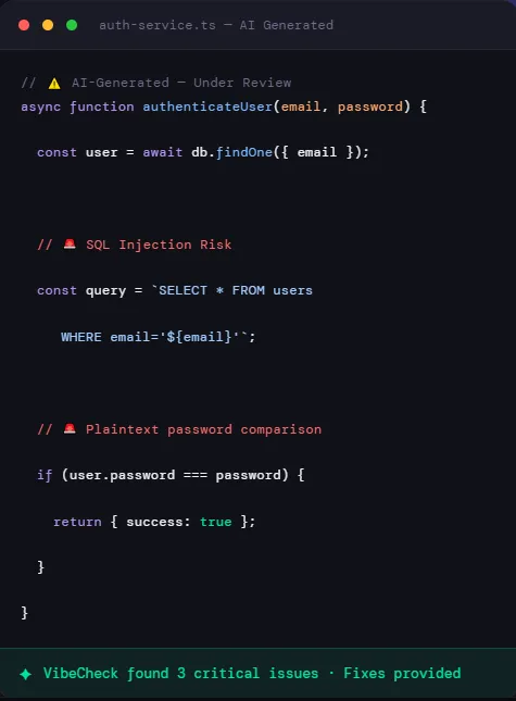 You vibe code with Cursor, Copilot, or Claude. We review it .